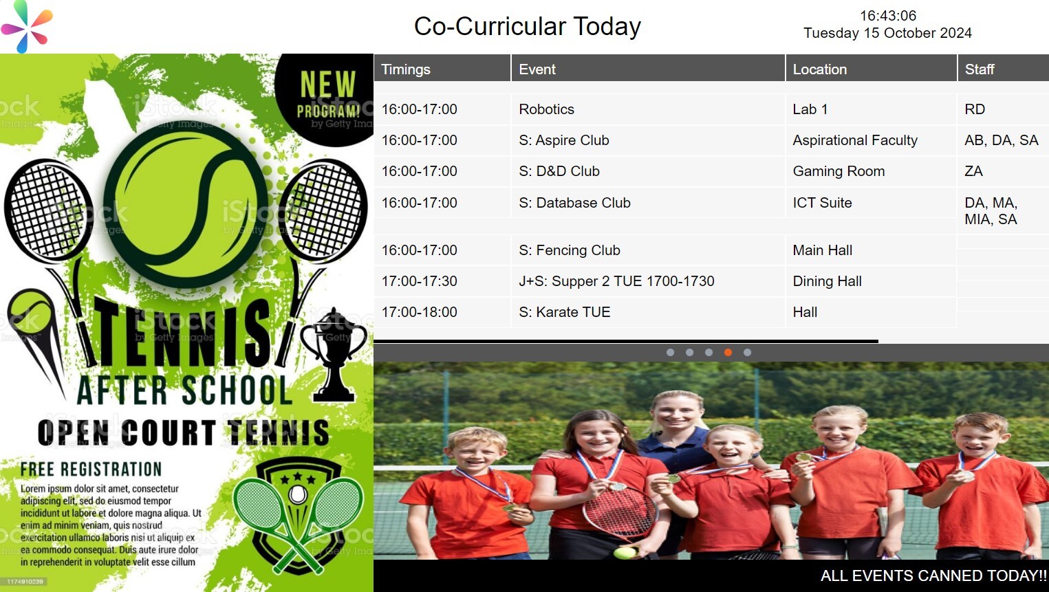It can be a challenge for students, staff and parents to keep up with extracurricular activities and it can be even more difficult for admins to keep everyone up to date. Printed displays are time consuming to update regularly and letters to parents don’t always make it home.